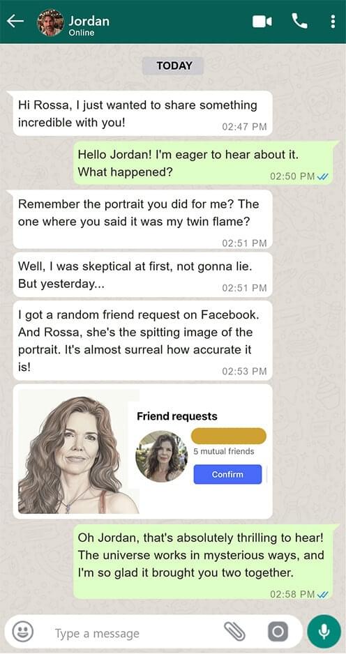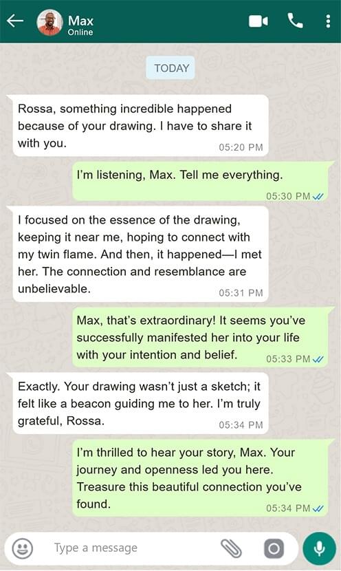This deep connection empowers me to craft not only a visual depiction of your twin flame but also capture the very essence of their spirit.